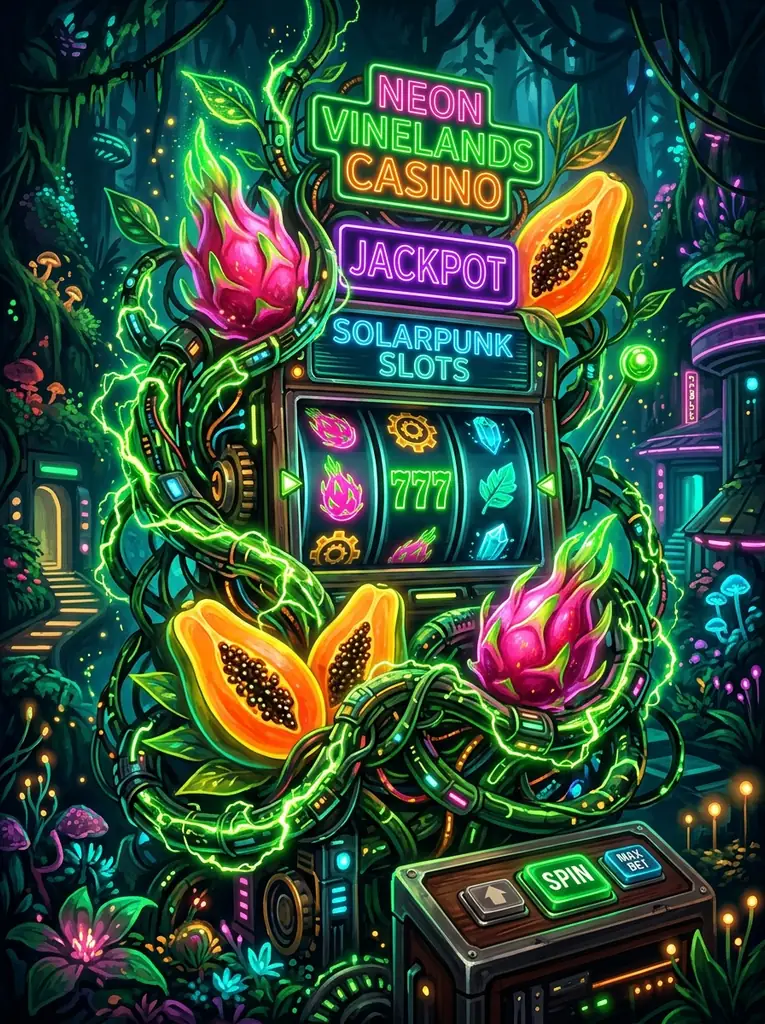 Harvest the glowing canopy. Watch mechanical vines bloom with neon fruits across 20 paylines. Cost: 50 Drops.